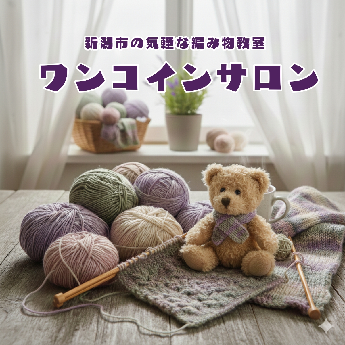 ワンコインサロンは1時間500円から気軽に習える新潟市の編み物教室です。3つのコースがあり、曜日・時間・回数も自由に選択可能。小学生からお年寄りまでどなたでも参加できます。編み物が初めての方も大歓迎!基礎からご指導いたします。